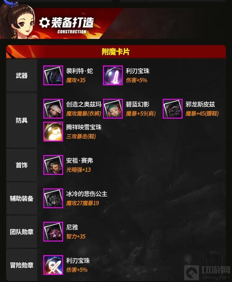这些附魔卡片的选择可以进一步提升智力和魔法攻击力,同时增加暴击率和伤害。