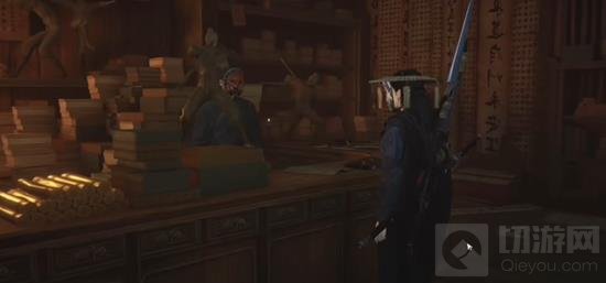 在光亮处视角左转可以看到一个店铺,进去后与NPC对话。
