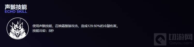 使用声骸技能,召唤霜鬃狼,对敌人造成129.60%的冷凝伤害,技能冷却时间为8秒。