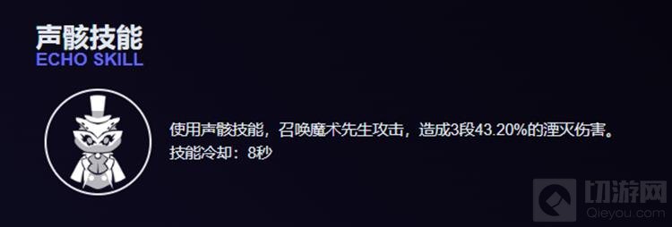技能特点:使用声骸技能,召唤魔术先生攻击,造成3段43.20%的湮灭伤害。