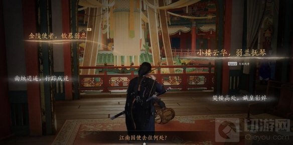 选择线索:选择金陵使者和弱兰一曲,然后选择金陵使者和小楼云华。