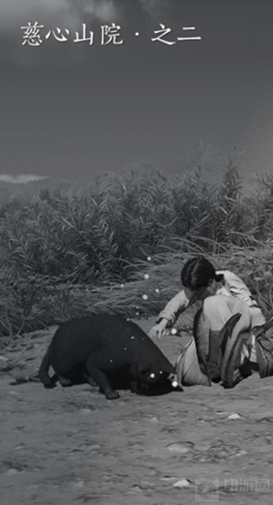 在慈心山院门口附近,小女孩苗苗正在安抚焦急的喵老大。玩家需要与他们互动,了解喵老大为何焦急,并帮助解决问题。