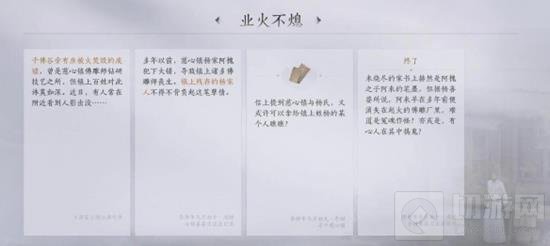 “业火不熄”任务是一个结合了探索和剧情对话的任务,玩家需要在特定时间找到特定的物品,并与NPC进行对话来完成任务。完成任务后,玩家将获得长鸣玉、探索度、角色经验和周元通宝等奖励,这些奖励将有助于玩家在游戏中的进步和探索。希望这些信息能帮助你顺利完成任务。如果需要更多《燕云十六声》的游戏攻略和信息,可以关注切游网燕云十六声专区获取。是整理了一些相关的攻略,感兴趣的小伙伴快来跟随小编的脚步一起看看吧!