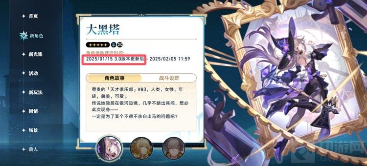 崩坏星穹铁道3.0新版本的版本中期卡池轮换将在2025年2月5日中午12:00进行,到时候大黑塔的卡池将会结束,阿格莱雅的卡池将会开启。