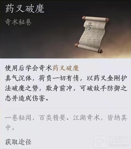 以上就是燕云十六声奇术药叉破魔怎么获取,燕云药叉破魔获取攻略的全部内容了,更多游戏资讯,攻略内容敬请关注切游网,您的支持是我们努力的动力!