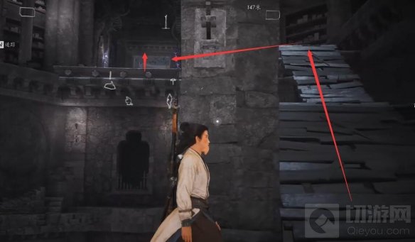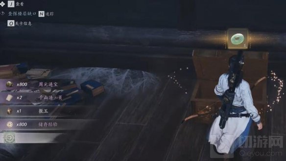 视角右转上楼:进去视角右转上去可以拿到宝箱打开获得2个千山法残页。