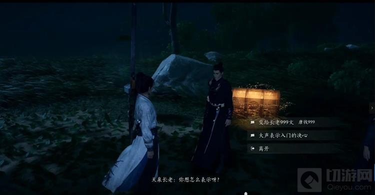 将两个不义之财偷到手后,根据任务指引回去找张一豪,拜师入门并学会“嗟夫刀法”。自此成功加入天泉门派。