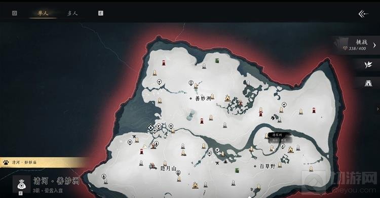 传送到百草野上方的将军祠,找到游商伏禄寿,按V进入听风辨位,发现他身上有不义之财,奇术暗取成功率为90%。