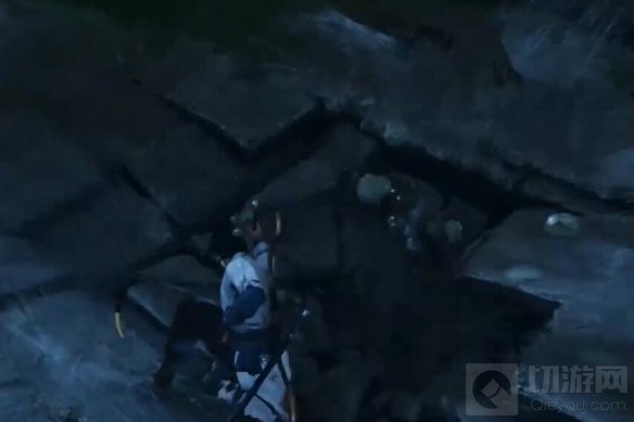 使用千斤坠:根据任务提示,使用千斤坠技能将地面砸开,然后跳进去。