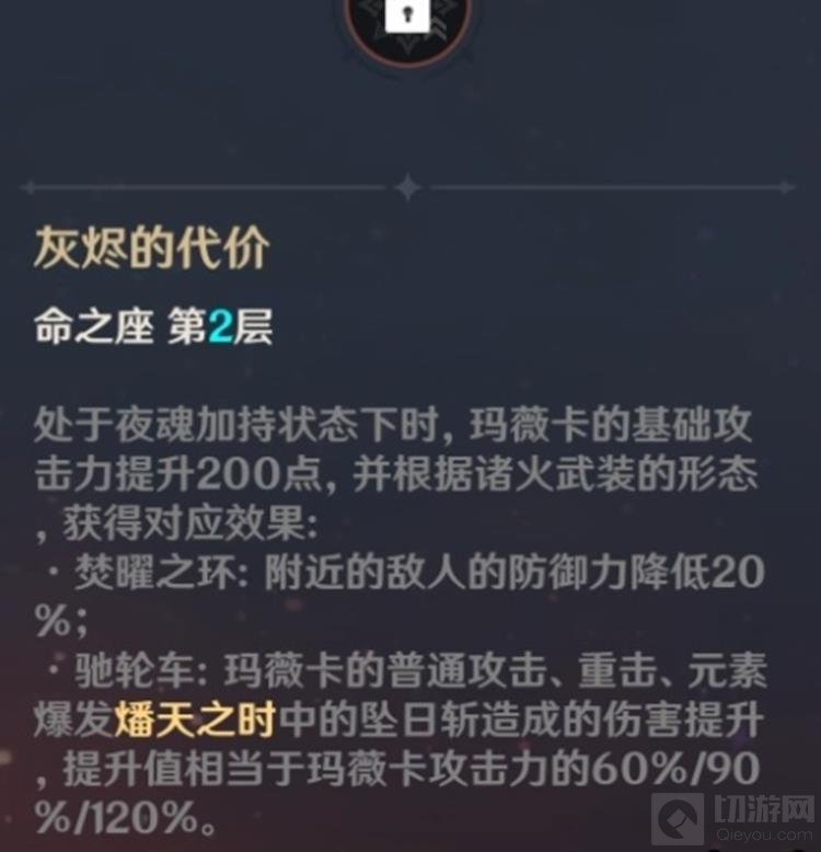 一命提升:一命玛薇卡主要提升了角色的增伤效果,但这种提升相对有限,且效果有时间限制。虽然能够提高玛薇卡的夜魂值和战意效率,但整体提升幅度较小。