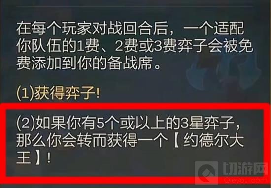 如果你有5个或以上的3星弈子,那么你会转而获得一个【约德尔大王】,它是一个非常强力的单位,能够为队伍带来巨大的战斗力提升.