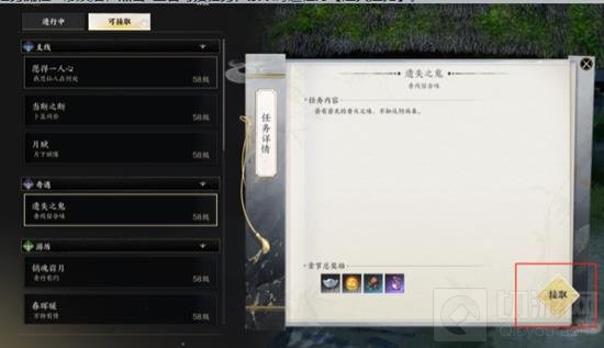 触发任务后,点击L查看可接任务列表,选择并接取奇遇任务【遗矢之鬼】。