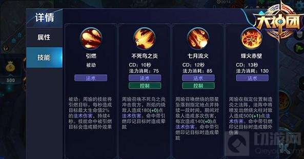 周瑜的技能命中已经带有“引燃”印记的目标,还会产生控制或增加伤害效果。因此,一个熟练的周瑜玩家应该学会根据环境所需,用适当的技能combo去获得需要的额外效果;
