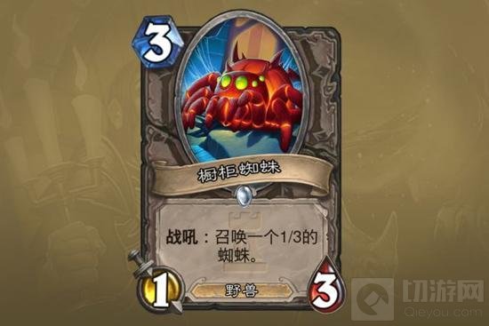 橱柜蜘蛛:在不受到buff的情况下较差的一张牌,害怕对手的各种激怒随从以及苦痛。只有选到较多王者祝福、亚煞极印记、驯兽师又缺少赖场随从的情况下可以拿。场攻过低是最大硬伤。
