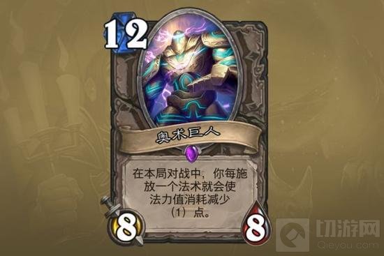 奥术巨人:大约看作10费8/8白板,太晚才能打出,遇到法术少的卡组甚至无法打出,就算打出也只是一个白板,因此非常差。