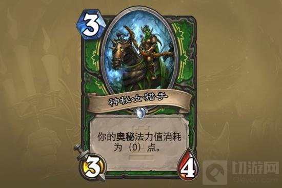 神秘女猎手:除了武器之外,猎人终于有了新的节奏点。虽然竞技场中难以挂上较多奥秘,但一旦触发特效就有滚雪球的可能性。如果因为她的特效让其成功站住,套牌中新摸到的奥秘也可以免费打出。本身身材坚实,会和动物伙伴、鹰角弓一起撑起猎人的三费曲线。