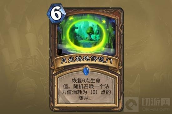 月光林地传送门:非常契合德鲁伊竞技场中慢速思路的一张卡。6费随从的平均质量不错,且德鲁伊随从的生命值较高,可以作为治疗效果的受体。作为随从质量较高的职业,如果曲线较高,在后期消耗掉对手资源的时候英雄的生命也往往岌岌可危。月光林地的传送门也可以解决这一问题。野兽德应该是之后德鲁伊的主流,6点的治疗治疗随从容易过量,但是能奶到怪就会非常赚了。带一张就好,而且作为蓝卡一般也只能选到一张。