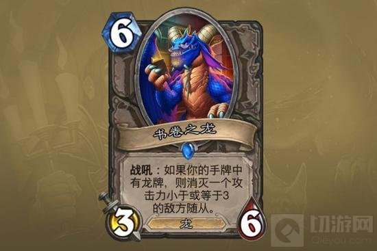 书卷之龙:他的特效被双重触发限制所制约,一方面需要自己手牌有龙,又需要有合适目标。因此发动难度比黑翼腐蚀者大很多。此外,常见的龙基本6费就会打出,这样触发效果就更难了。其实一般攻击不低于费用的随从不发动特效还是可用的,而这张不是,因此总得来说较差。