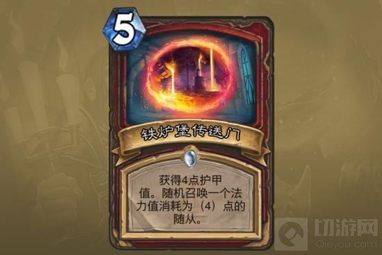 铁炉堡传送门:这张卡绝对不能作为5费曲线使用,会让自己的场面崩掉,4费是一个身材不达标随从的集中区域。一点点用处是防止卖脸过渡,但是宁可使用更多嘲讽随从解决这个问题。