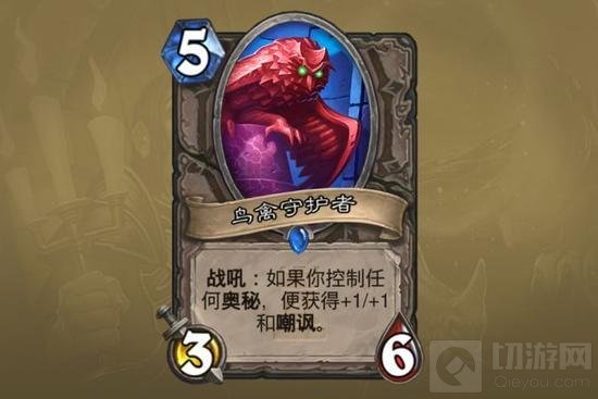 鸟禽守护者:这张卡的使用效果取决于所在的卡组。竞技场中只有猎人的奥秘较为优秀,更何况有优秀新卡神秘女猎手配合。因此这张卡更适合猎人。但是总得来说,这张卡特效触发较为困难,因此当作536白板看待即可。特别注意不要因为选了这张卡而选奥秘,毕竟除了冰冻陷阱和复仇的奥秘在竞技场中都并不实用。