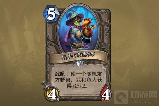 展览馆法师:4费常见的优质buff对象太少,能发挥一次特效就不错了,逆风效果难生效;不同于机械动物管理员,5费44会被2费随从配合英雄技能换掉,被4费4/5白吃。其本身的高费又限制了其直接从手牌中打出配合,本身也没有种族。这张卡在前期种族混搭又有控制力的卡组中确实可以发挥上限将优势转化为胜利,遇到这种极少的情况再选吧。