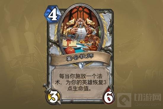 宴会牧师:在之前版本,如果面对一个5/4和3/5身材随从的抉择,由于牧师缺少各种形式的补刀,我一定是会选择5/4的。因此3/6身材虽然看起来较好,但是没有buff的配合下不能稳定使牧师拿到先手,因此这张卡使得真言术:触的抓位有所提高,叫嚣和黑铁则更是宝贵。牧师不需要每一个随从都拥有高生命,只要能保住一两个就可以获胜。当然4费3/6总是好的,赖场效果非常不错。以他作为4费的中坚力量,再拿到buff和灭/埋的牧师会非常可怕。