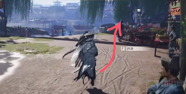 获取到所有需要的信息后,可以选择传送到界碑或者直接走出店铺,然后朝着鱼龙方向前进。到达鱼龙旁边的水边,你会注意到那里有一颗大柳树。在树下,你会发现一封遗落的信纸,拾取它作为关键道具。