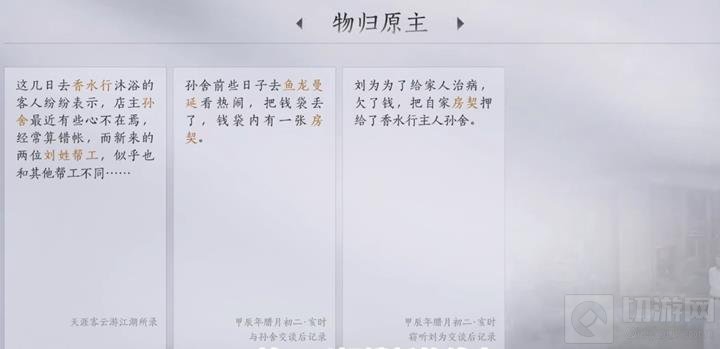 以上就是燕云十六声物归原物体万事知任务的详细攻略了。如果你在游戏中遇到了困难或不确定如何继续,请参考上述步骤。如果这篇攻略对你有帮助,欢迎收藏一下切游。各位玩家的支持是我们持续提供最新、最全游戏攻略的动力。祝你在游戏中玩得开心,探索更多未知的故事!