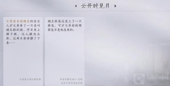 以上就是燕云十六声云开时见月万事知任务的详细攻略了。如果你在游戏中遇到了困难或不确定如何继续,请参考上述步骤。如果这篇攻略对你有帮助,欢迎收藏一下切游。各位玩家的支持是我们持续提供最新、最全游戏攻略的动力。祝你在游戏中玩得开心,探索更多未知的故事!