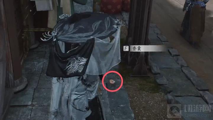 对话结束后,在店铺门口你会捡到一个香囊。这个小小的道具将是解开后续谜题的关键。