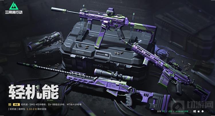 从1月10日0点至2月6日24点,玩家可以参与“轻机能捆绑包”活动。该捆绑包包含轻机能SMG-45冲锋枪、M7战斗步枪、SV98狙击步枪以及轻机能系列的头像、军牌和喷漆。玩家可以通过花费1500三角券或三角币获得这些物品。