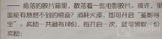 开启方式:玩家需要消耗火漆来开启“鉴影寻宝”,每次开启都会获得一份奖励.