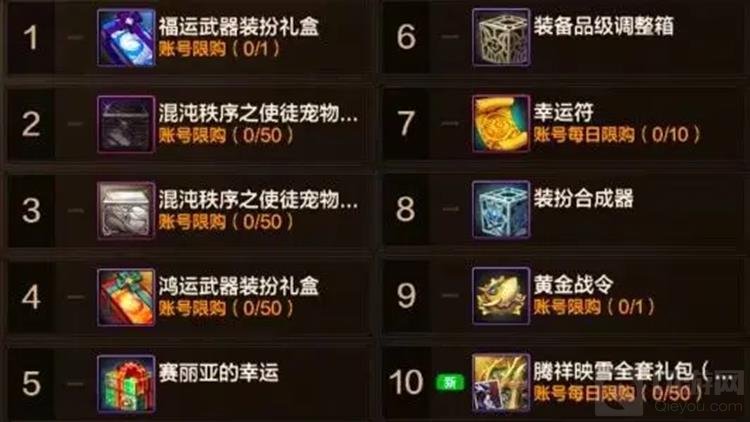 最后,我们来聊聊商城热门道具TOP10。令人意外的是,“福运、鸿运武器装扮礼盒”在商城的热度非常高。从道具价值上来看,这次的武器装扮礼盒性价比极低,一个武器装扮在拍卖行的价格一般在5-6万泰拉,而这个礼盒的售价却达到了近20万泰拉.然而,游戏内的外观党玩家众多,硬生生把这套礼盒冲到了第一和第四的热度。魔剑、机械牛臂铠等武器在dnf手游玩家心中的地位果然与众不同。