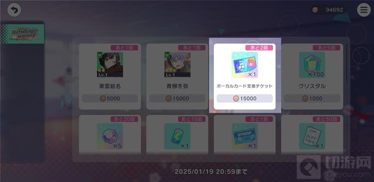 例如,使用一定数量的心愿碎片在心愿碎片兑换所中兑换 Another Vocal 交换卡。