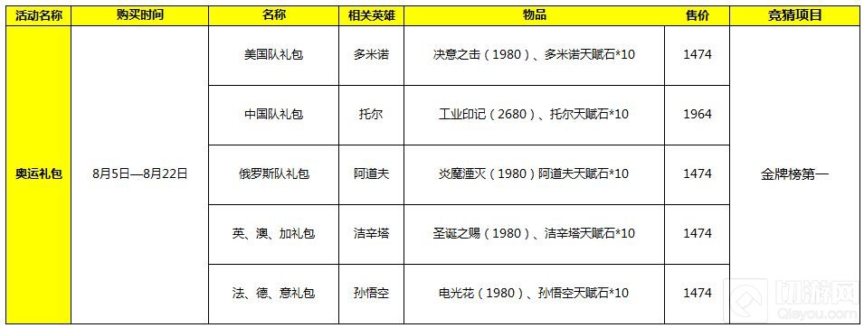 竞猜大奖:奥运会结束后,购买礼包对应礼包,竞猜正确的勇士将获得购买礼包花费钻石的70%的返利。