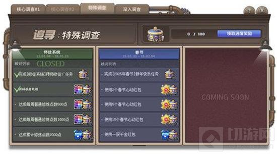 追寻调查进度奖励