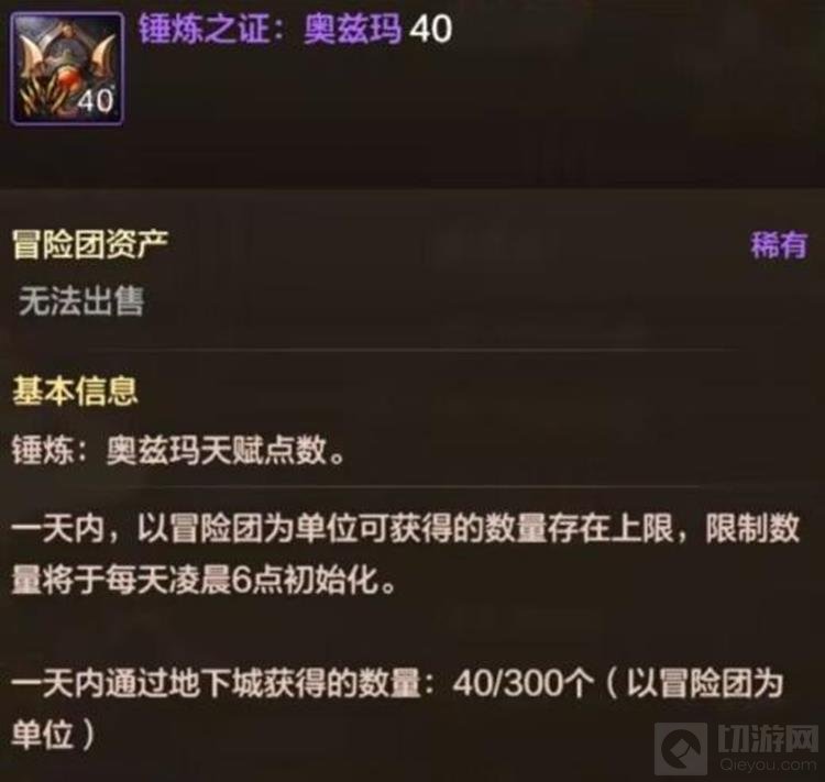 锤炼系统的核心在于消耗天赋点升级天赋,而天赋点的获取方式相对有限。玩家在通关勇士级地下城时,会获得“锤炼之证:奥兹玛”,每积累300个锤炼之证可兑换一个天赋点。值得注意的是,冒险团每天最多只能从勇士地图获得300个锤炼之证,即每天最多获得一个天赋点。此外,勇士级副本每次挑战通关固定产出10枚锤炼之证,燃烧疲劳可产出20枚,且受成长活力影响。