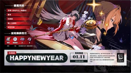兑换码包含:300菲林、30000丁尼、2资深调查员记录、3音擎能源模块