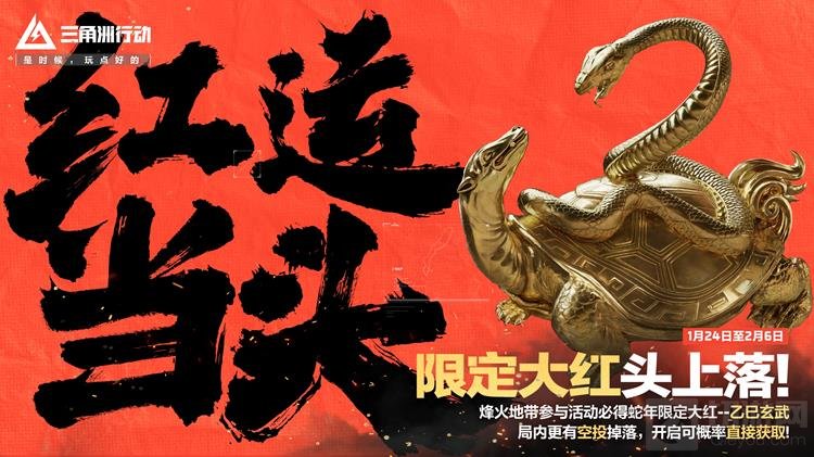 限定大红头上落:参与烽火地带活动必得蛇年限定大红——乙巳玄武。局内空投也有概率直接获取。