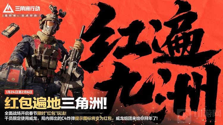 红包遍地三角洲:全面战场开启春节限时红包玩法,干员限定使用威龙,局内掷出的C4炸弹提示图标将变为红包,威龙组团来给你拜年了!