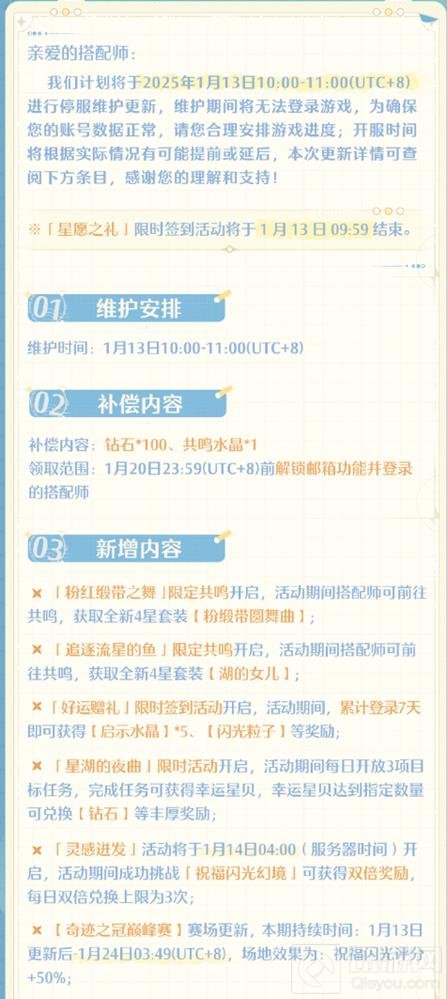 《无限暖暖》于2025年1月13日进行了停服维护更新,以下是详细的更新内容和安排,感兴趣的小伙伴快来跟随小编的脚步一起看看吧!