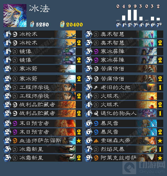 上图为我用的火把冰卡组,和一般的冰法卡组相比也大同小异。