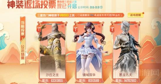 经过3天的激烈角逐,神装返场投票结果已于1月16日0点出炉!【沙丘之主】、【镜域双华】、【墨龙九天】将会在1月19日进行返场!具体时间特种兵们请持续保持关注哦~