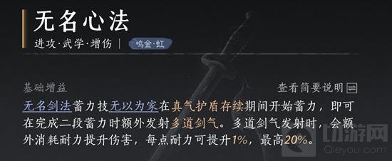 特点:无名心法提供基础的剑法支持,易水歌和威猛歌增强剑法的攻击力和连贯性,燎原星火为剑法增加额外的伤害效果。