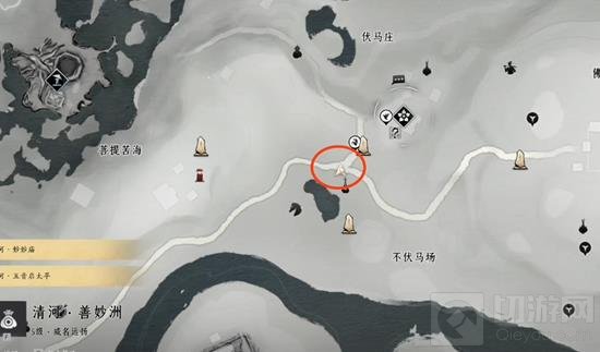 打开地图,传送到不伏马场左上角的三岔路口,具体位置如下图所示: