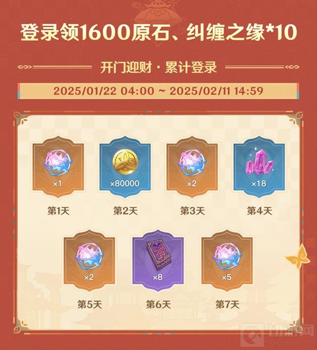 登录领奖:在活动期间,玩家只需累计登录游戏,即可领取总计1600原石、纠缠之缘*10等丰厚奖励。