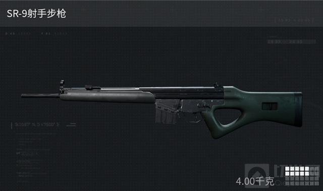 SR-9射手步枪在背包中占位5*2格区域,4.00千克。