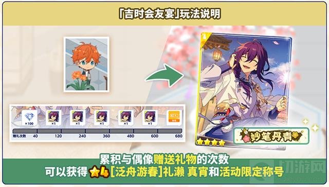 此外,累积赠送礼物的次数达到一定数量后,制作人还能获得特别奖励,包括★4偶像【泛舟游春】礼濑真宵角色卡和活动限定称号【妙笔丹青】。