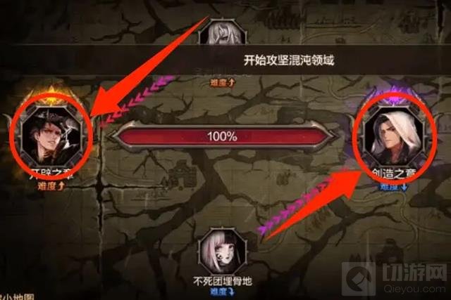 首先从一阶段来看,挑战模式与攻坚模式在机制上基本相同,但怪物的血量和防御有了大幅提升。在攻坚模式中,玩家通常会优先攻打上下两个小图以降低最终boss的难度,然而在挑战模式里,这样做会浪费大量时间,建议直接挑战boss,即1队打开辟之章,2队打创造之章。
