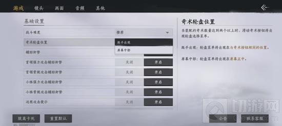 如果小伙伴们使用不习惯系统模式,可以打开燕云手游设置,在操作设置栏目,修改奇术的释放方式,选择“屏幕中部”。